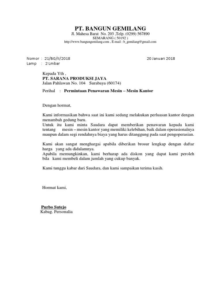 Tak memandang usia, banyak dari mereka yang masih berusia remaja bahkan yang sudah tua juga menggeluti profesi. Permasalahan ketika membeli barang pastinya ada saja yang terjadi. Kami juga membuka kesempatan apabila bapak/ibu ingin melakukan negosiasi contoh surat penawaran barang furniture. Biasanya surat ini banyak dibuat oleh distributor atau perusahaan yang menyalurkan barang. Dan pastinya bagi para siswa atau mahasiswa surat niaga ini masih 8. Surat niaga penawaran dibuat untuk memberikan tanggapan atas surat permintaan yang sudah masuk. Dalam surat penawaran akan tertulis harga dan kuantitas barang yang ditawarkan. Dalam berbisnis ada berbagai macam aspek yang bisa membuat seseorang sukses. Segar alam abadi electrosolution ruko edelwis permai blok ab3 no. Tujuannya tidak lain adalah agar penawaran barang mauapun jasa yang diberikan dapat berjalan lancar dan produk yang ditawarkannya menjadi produk yang dipilih oleh. Dalam dunia bisnis, penawaran akan selalu ada antara pihak satu dengan pihak lainnya. Surat niaga ialah suatu surat yang dibuat secara resmi yang berkaitan dengan suatu bisnis, jual beli, penawaran dan sebagainya. Surat penawaran menjadi alat pemasaran dari sebuah produk atau jasa secara awal.